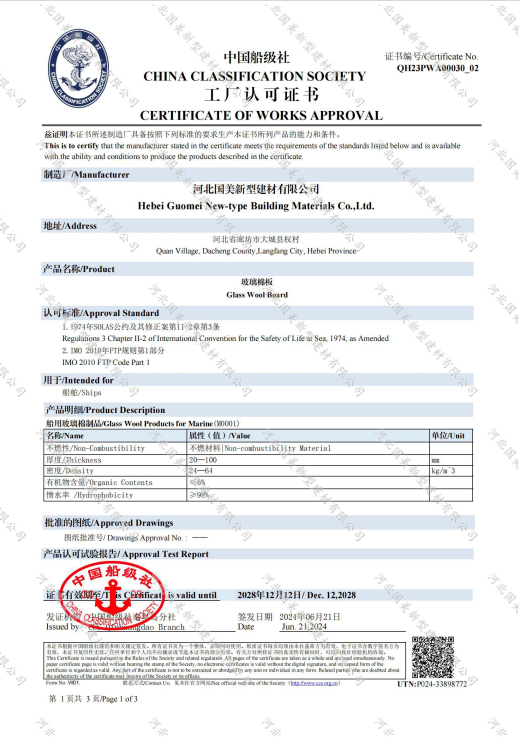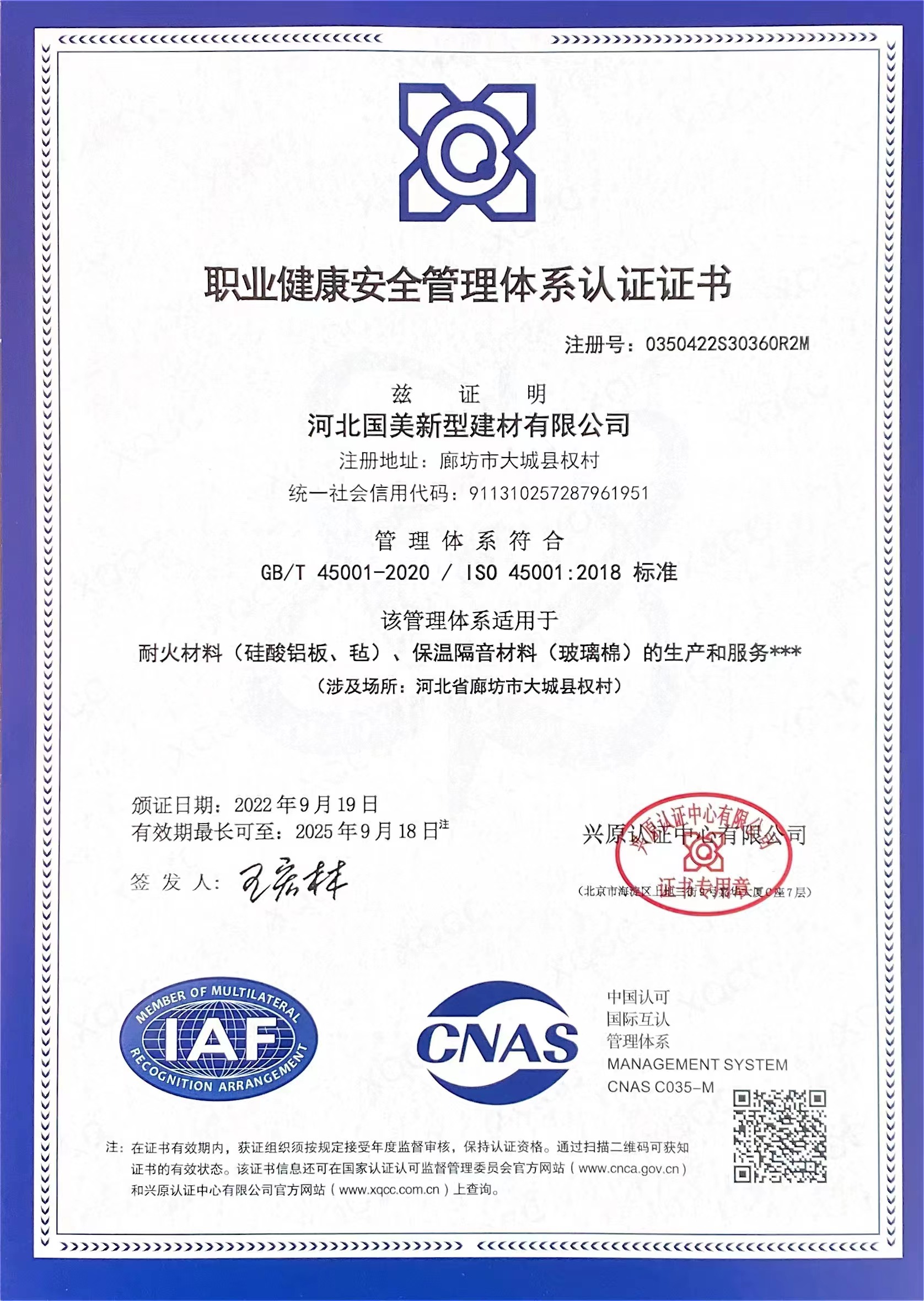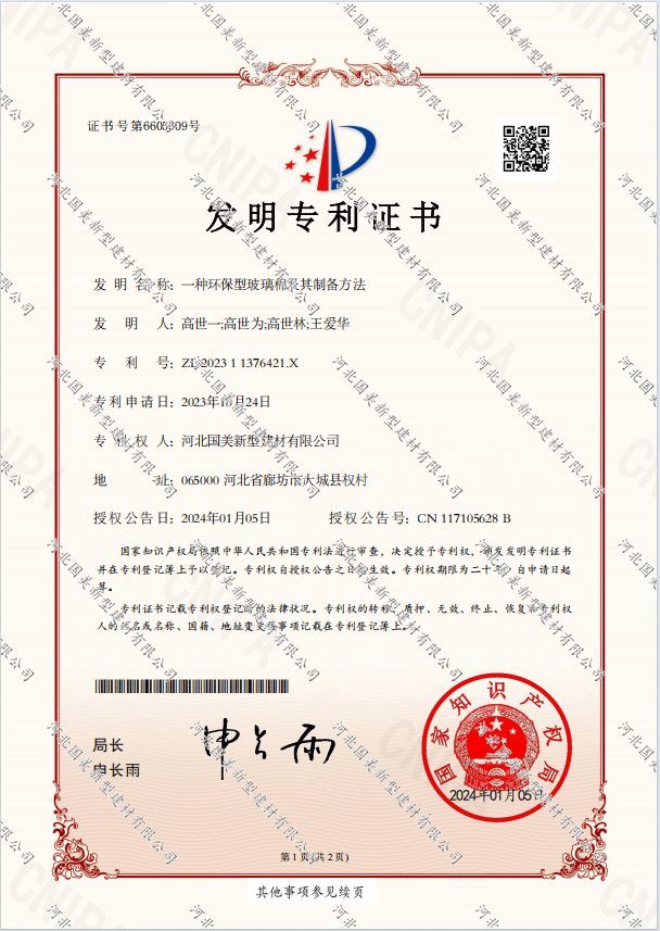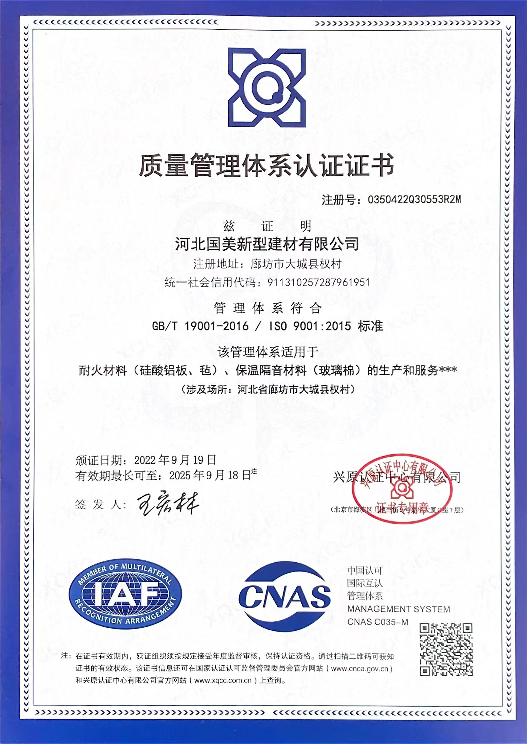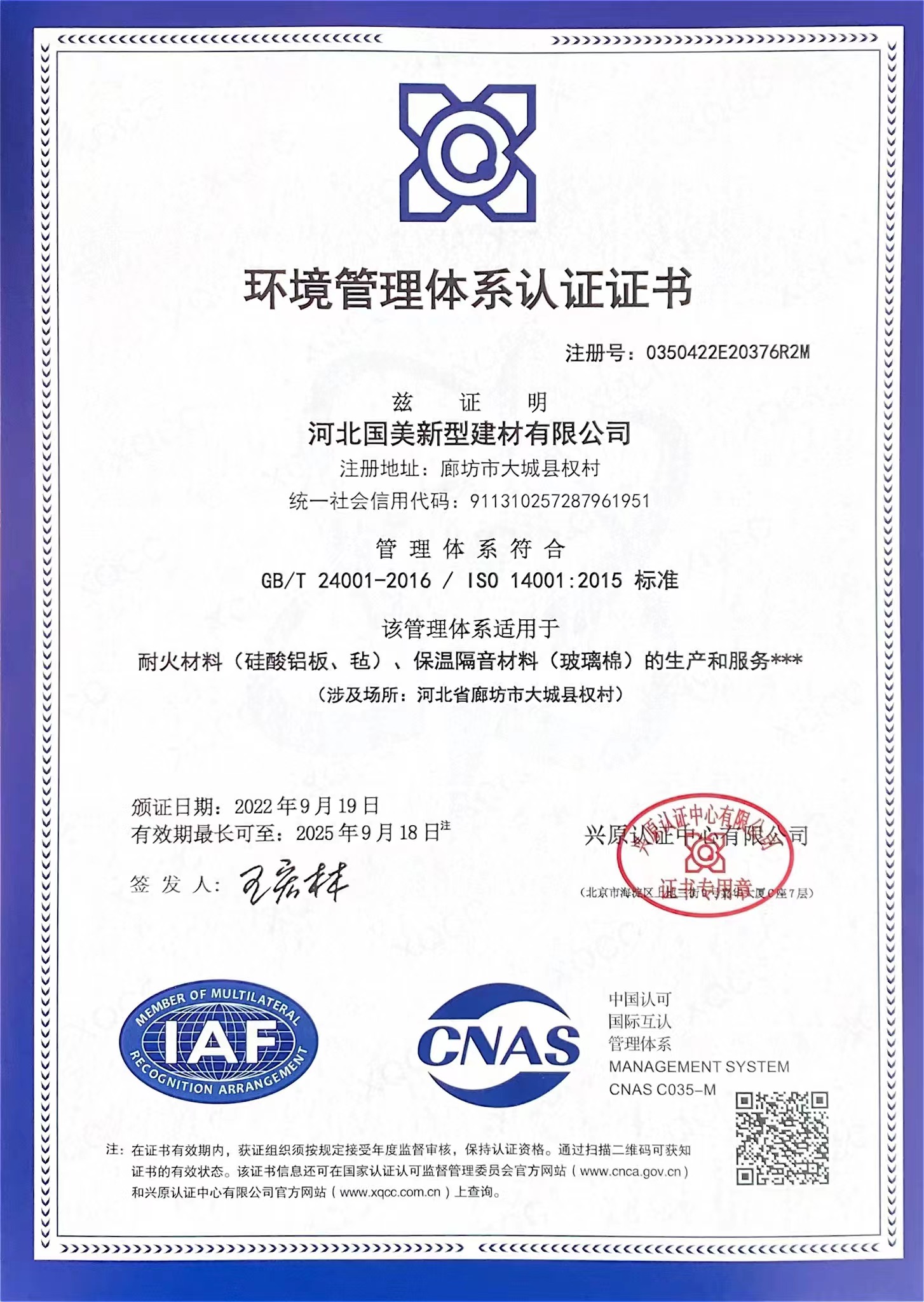 硅酸铝纤维棉及纤维板生产线 专利证书