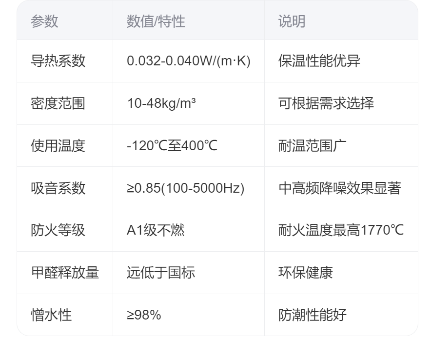玻璃棉:吸音系数≥0.85(100-5000Hz全频段)在中频段(500Hz-2000Hz)表现尤为出色纤维直径细(5-8微米),形成三维立体多孔结构通过纤维间的摩擦和空气流动阻力消耗声能岩棉:降噪系数0.7-0.9对中高频声波有较好的隔音效果纤维相对粗短,密度通常较高(35-200kg/m³)