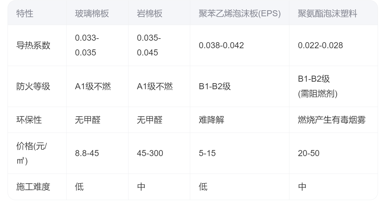 常规建筑:50mm厚度、24kg/m³密度产品性价比最高