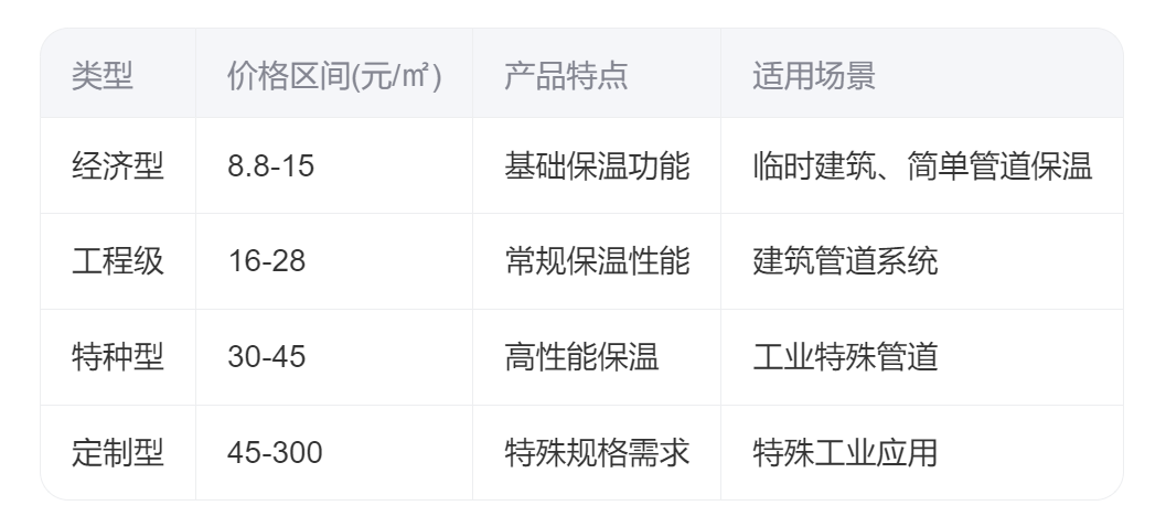 建筑用玻璃棉的市场价格范围较广,主要可分为以下几个档次:
