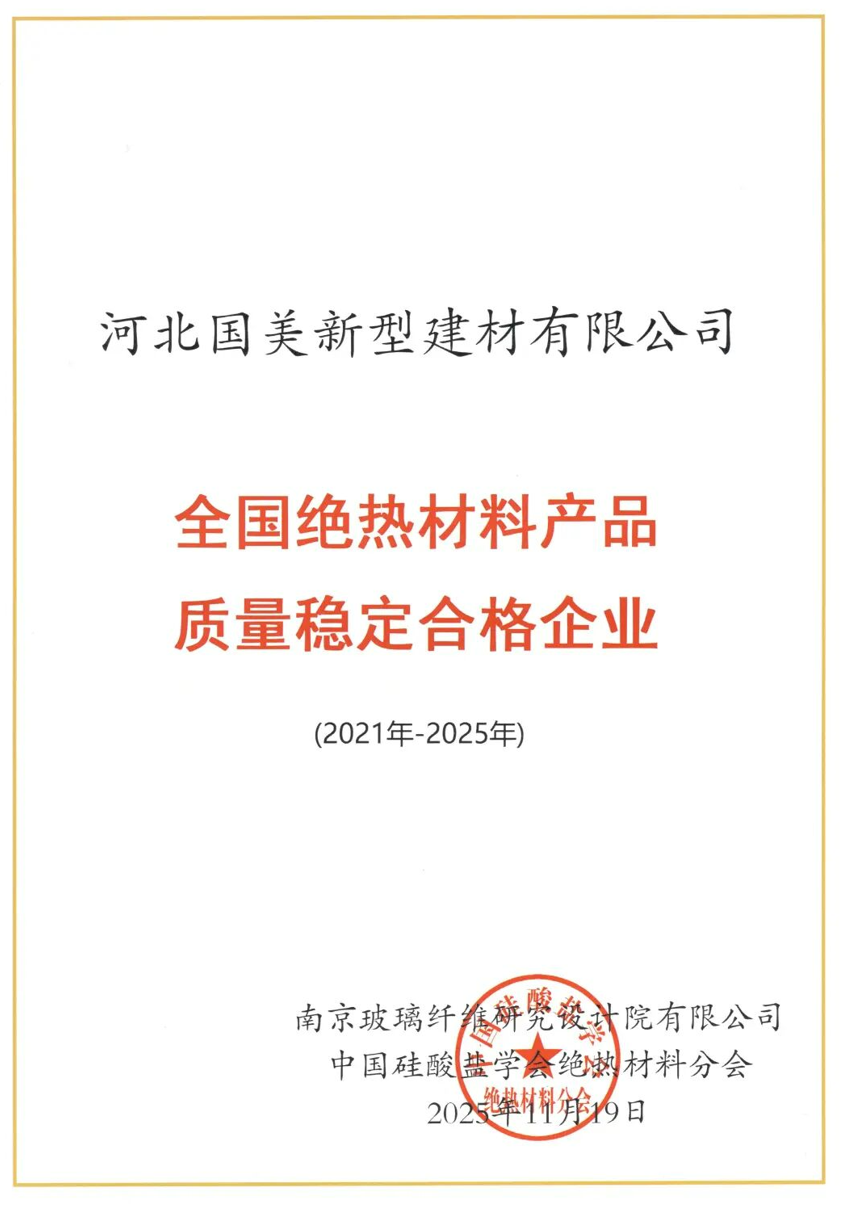 热烈庆祝第九届中国绝热材料行业学术年会圆满收官,国美公司荣膺“全国绝热材料产品质量稳定企业”
