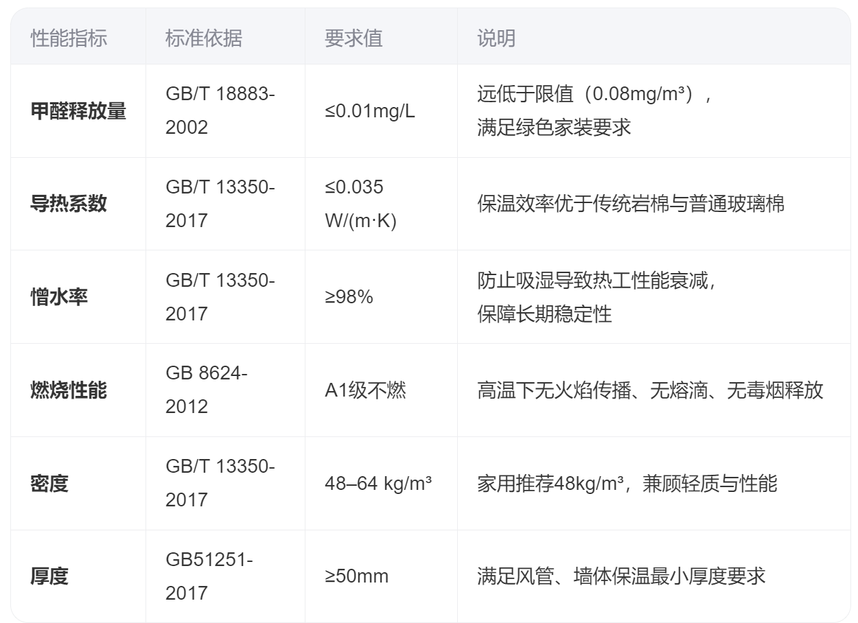 📌 注:所有符合GB/T 13350-2017的无甲醛玻璃棉产品,自动满足憎水要求,无需额外标注“憎水”字样。