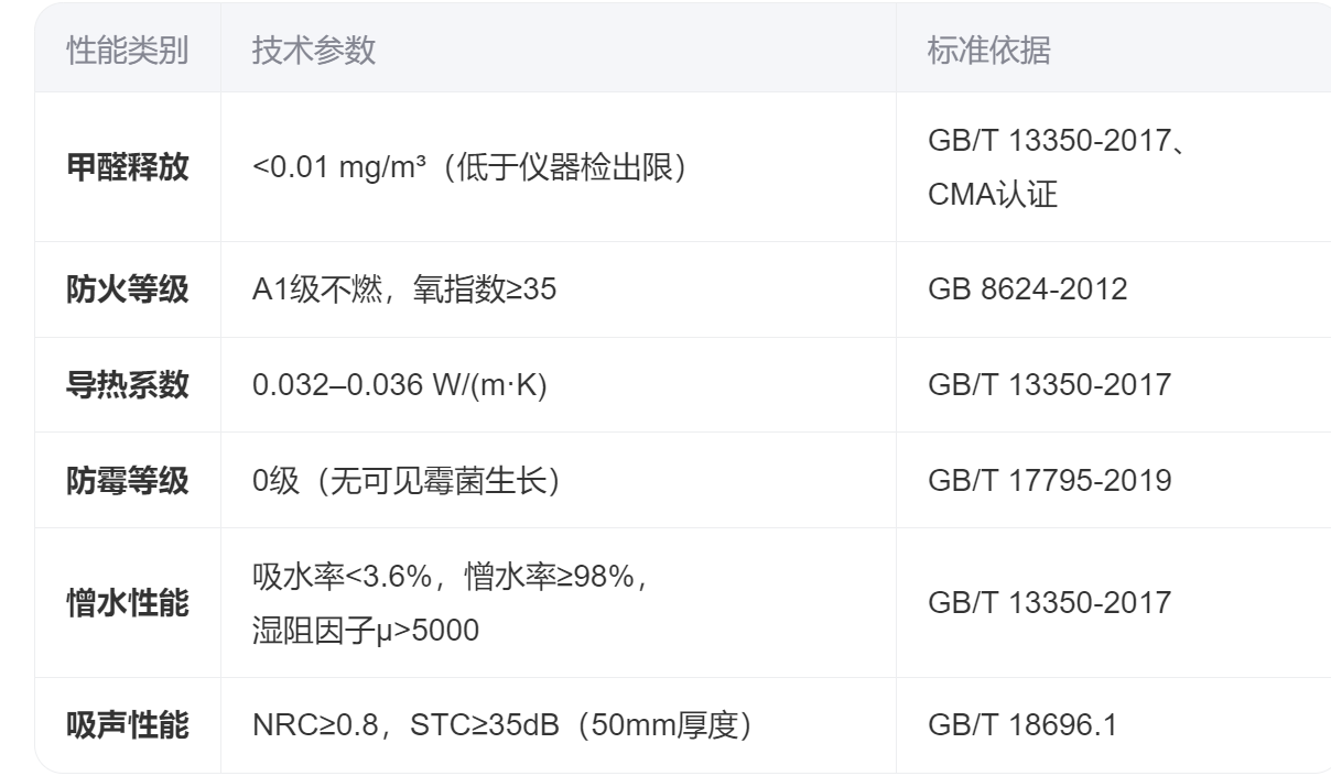 密度↑ → 导热系数↓ → 保温性↑;密度↑ → 耐火极限↑(64kg/m³×50mm可满足1.0小时耐火);密度↑ → 吸声频谱更宽,尤其对中高频噪音衰减更优。