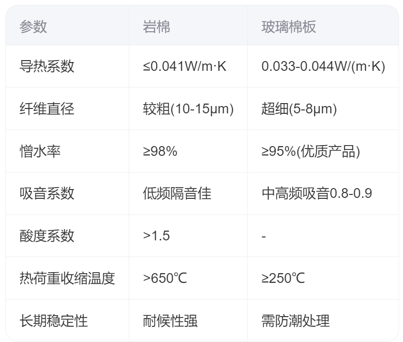 岩棉特性原料:以玄武岩、白云石等天然岩石为主要原料生产工艺:高温熔融(1450℃以上)后离心成纤维耐温性能:工作温度可达800℃,熔点高于1000℃密度范围:40-200kg/m³(主流产品80-150kg/m³)抗压强度:≥40kPa(优质产品可达60kPa以上)防火等级:A1级不燃材料,耐火时间30-120分钟环保性能:由70%以上回收材料组成玻璃棉板特性原料:以石英砂、回收玻璃为主要原料生产工艺:熔融玻璃纤维化后固化成型耐温性能:工作温度约600℃,熔点700℃密度范围:24-
