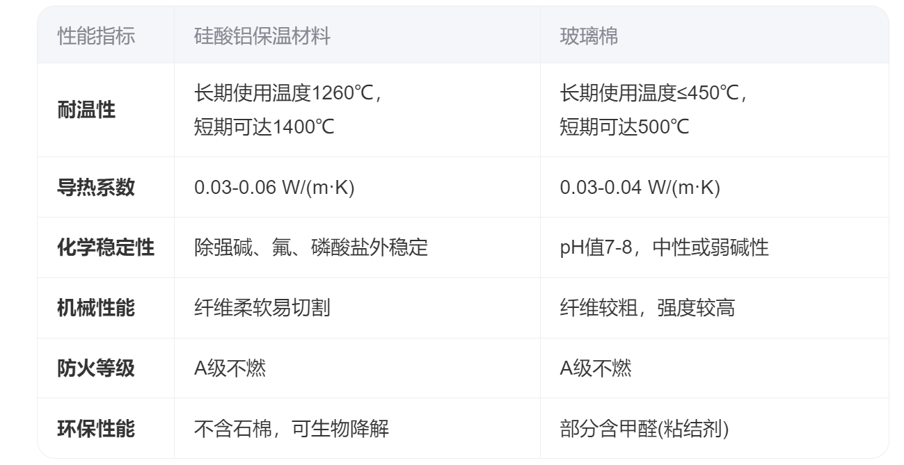 硅酸铝保温材料和岩棉是两种常用的工业保温材料,它们在多个关键性能指标上存在显著差异:硅酸铝材料在高温性能上明显优于岩棉,特别适用于1000℃以上的高温环境,而岩棉则在建筑保温领域应用更广泛。